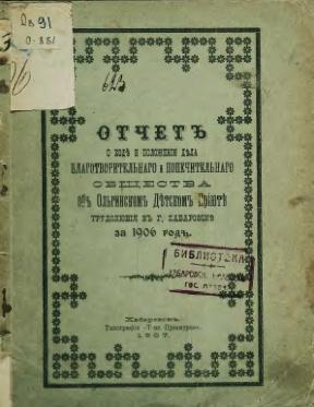 Отчет деятельности Хабаровского благотворительного общества за 1896 год