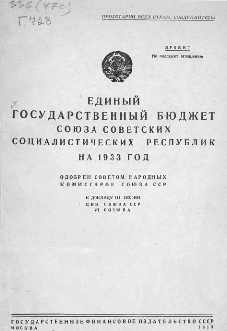 Государственный бюджет СССР за вторую пятилетку (1933-1937 г.г.)