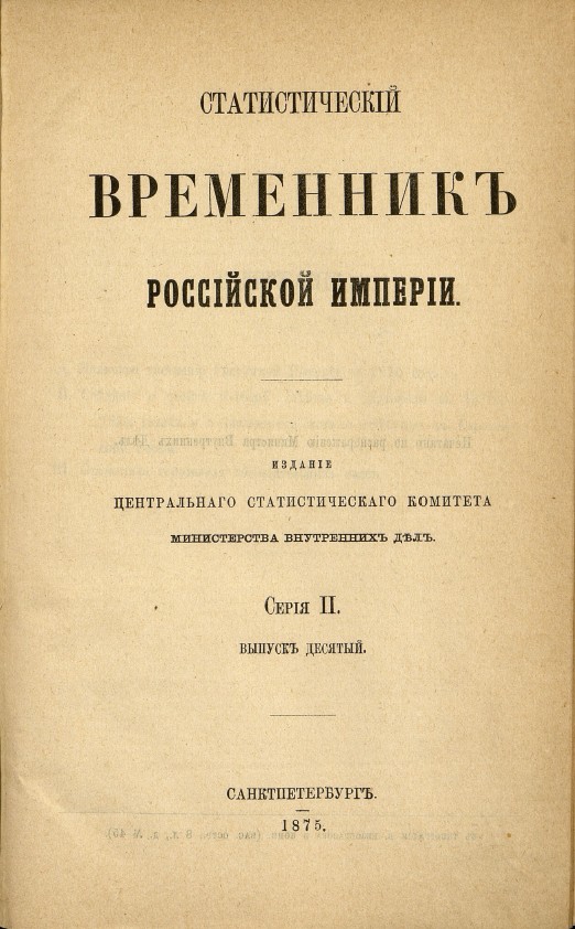 ЦСК МВД. Статистический временник Российской империи. Серии I-II