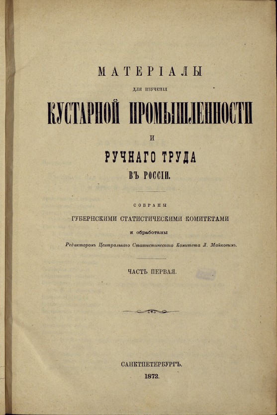 Материалы для изучения кустарной промышленности и ручного труда в России. Часть первая
