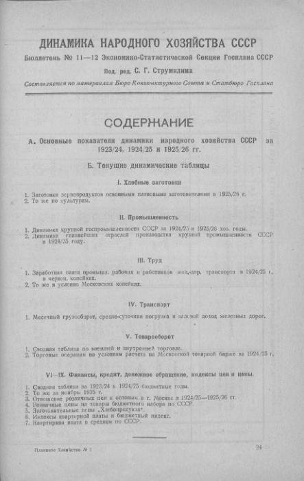 Плановое хозяйство. Издание Госплана СССР. 1926 (Выборка статистики)