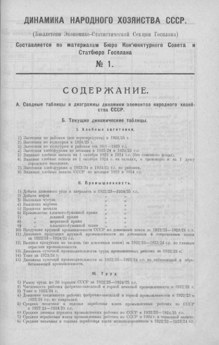 Плановое хозяйство. Издание Госплана СССР. 1925 (Выборка статистики)