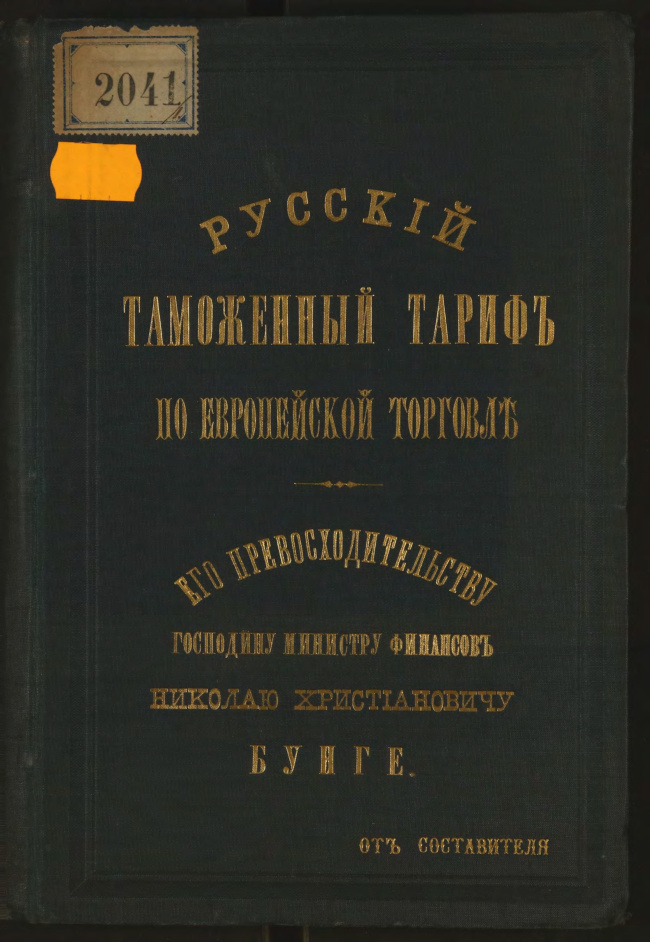 Русский таможенный тариф по европейской торговле с разъяснительными под каждой статьей циркулярами и постановлениями Особого Присутствия по применению товаров по тарифу; со споском непоименованных в статьях тарифа товаров, кои были применены к этим статьям; с табелью для вычета на тару; с правилами о клеймении товаров; со списком заграничных патентованных средств, запрещенных и разрешенных к привозу; с приложением циркуляров, касающихся досмотра товаров, очистки и применения их и проч