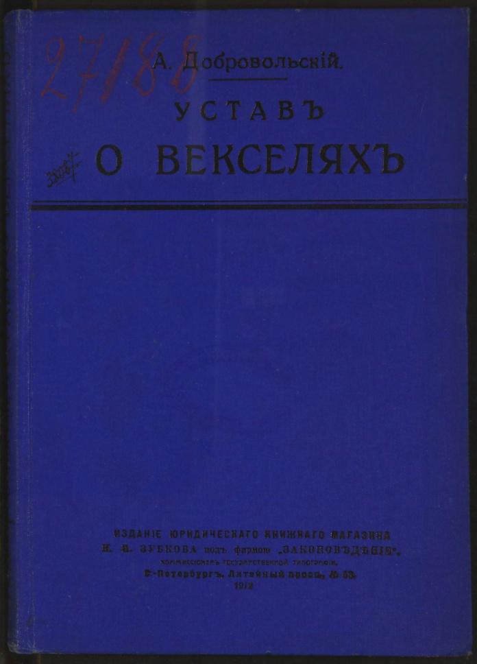 • Устав о векселях 27 мая 1902 года, введенный в действие 1 января 1903 года