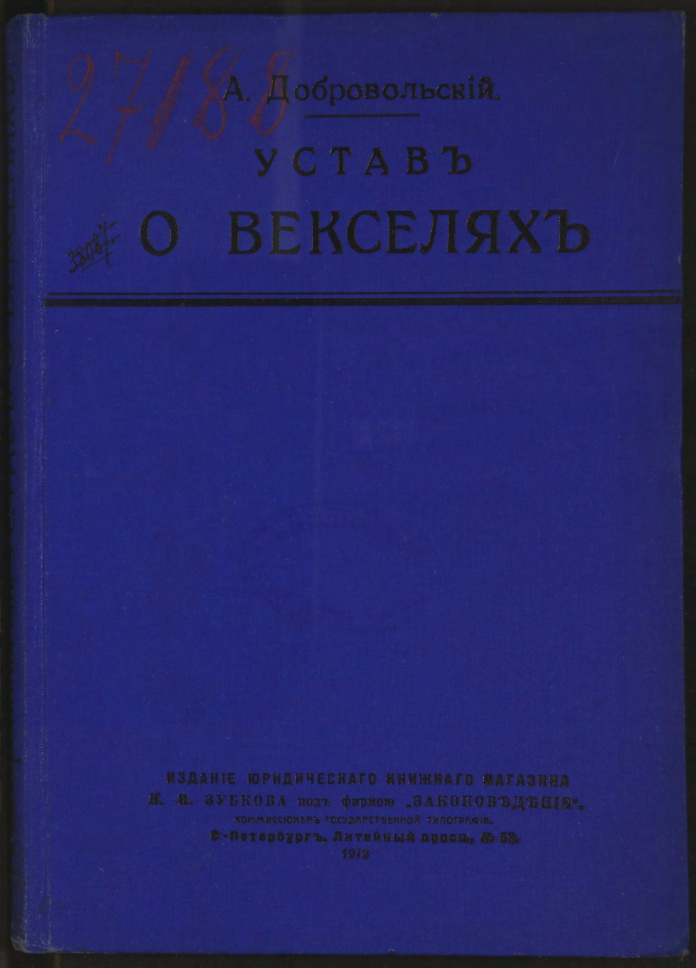 • Издание юридического книжного магазина И.И. Зубкова под фирмою "Законоведение" , Типография М. Волковича