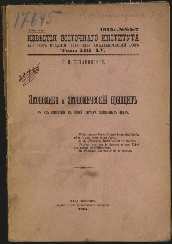Экономика и экономический принцип в их отношении к общей системе социальных наук