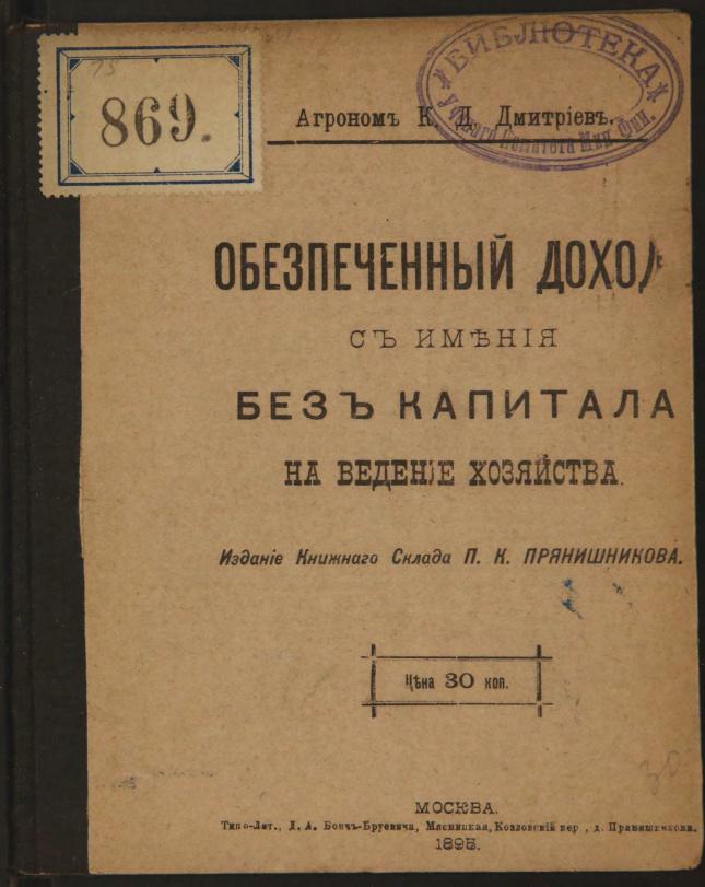 Обеспеченный доход с имения без капитала на ведение хозяйства