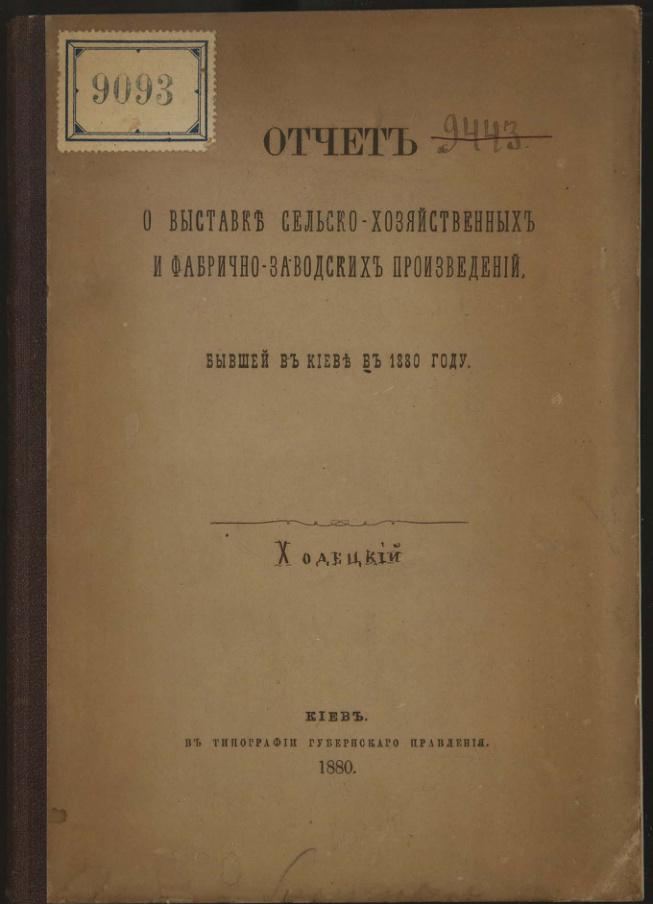 Отчет о Выставке сельскохозяйственных и фабрично-заводских произведений, бывшей в Киеве в 1880 году