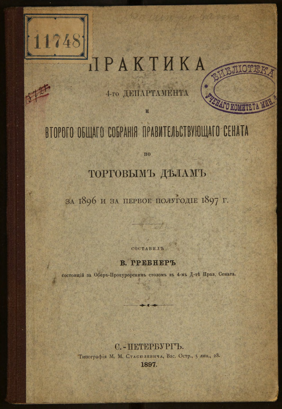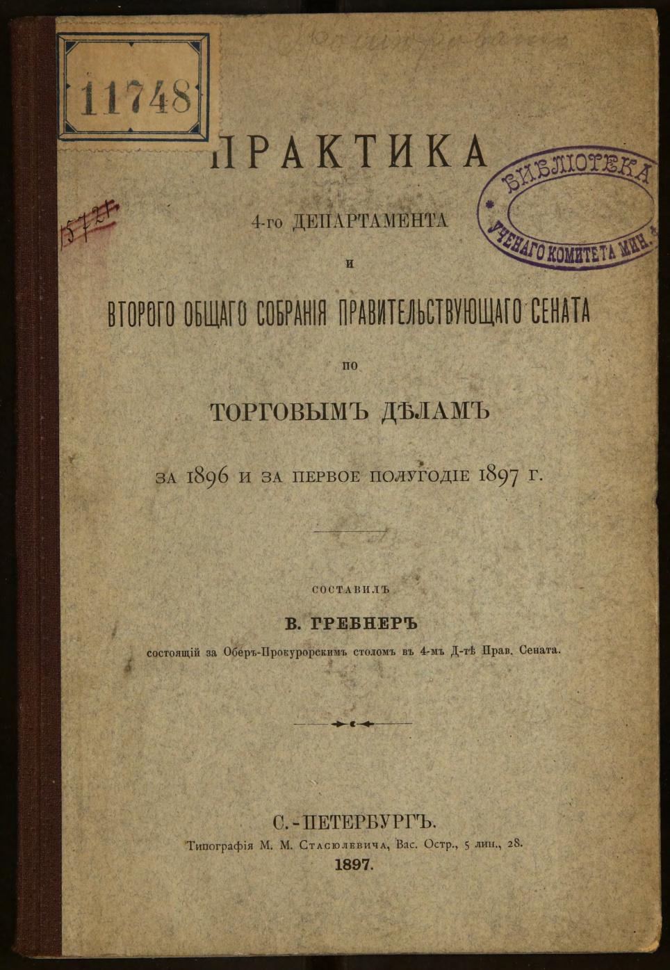 Практика 4-го департамента и второго общего собрания Правительствующего сената по торговым делам за 1896 и за первое полугодие 1897 г.