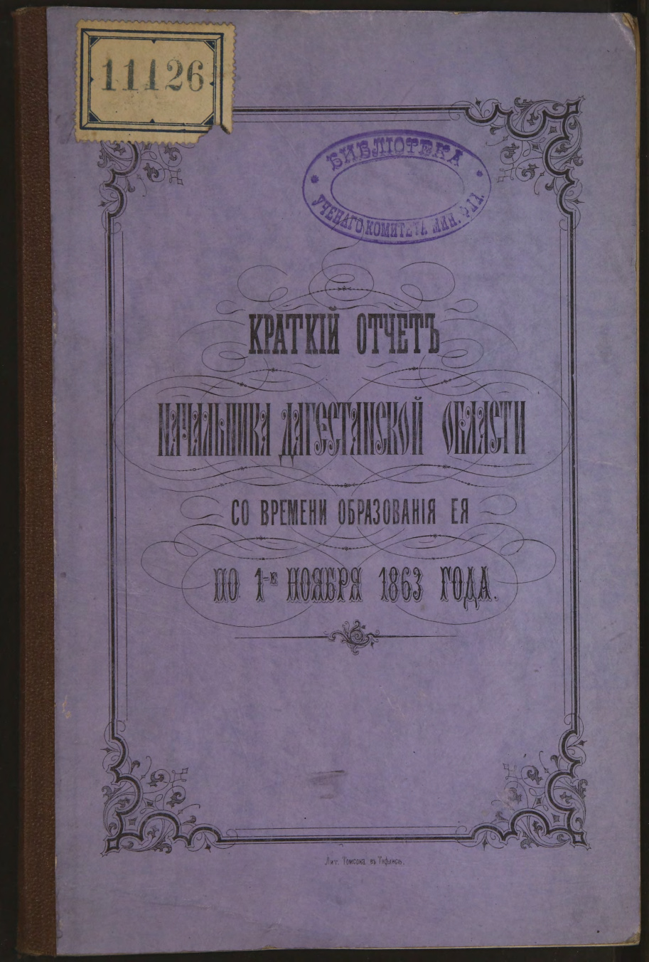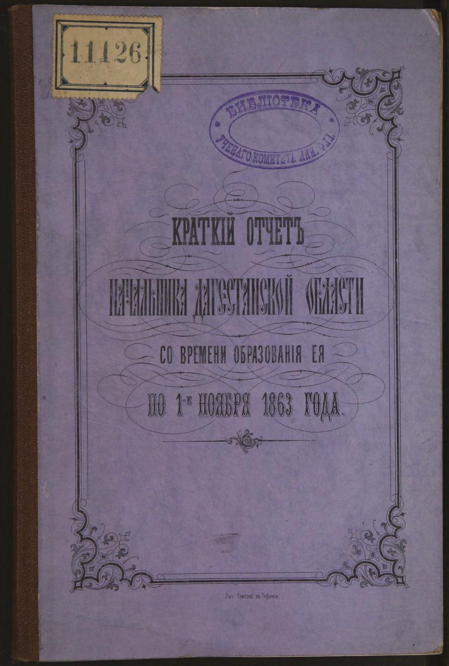 - Краткий отчет начальника Дагестанской области со времени образования ее по 1 ноября 1863 года. Т.1