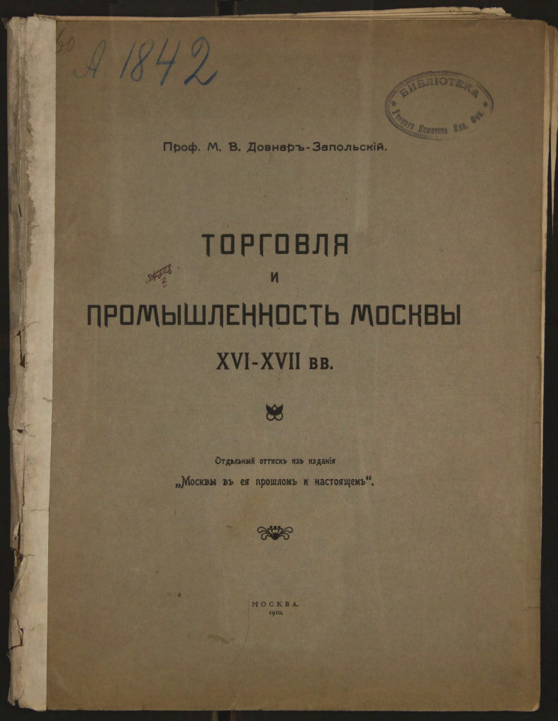 Торговля и промышленность Москвы XVI-XVII вв 1910