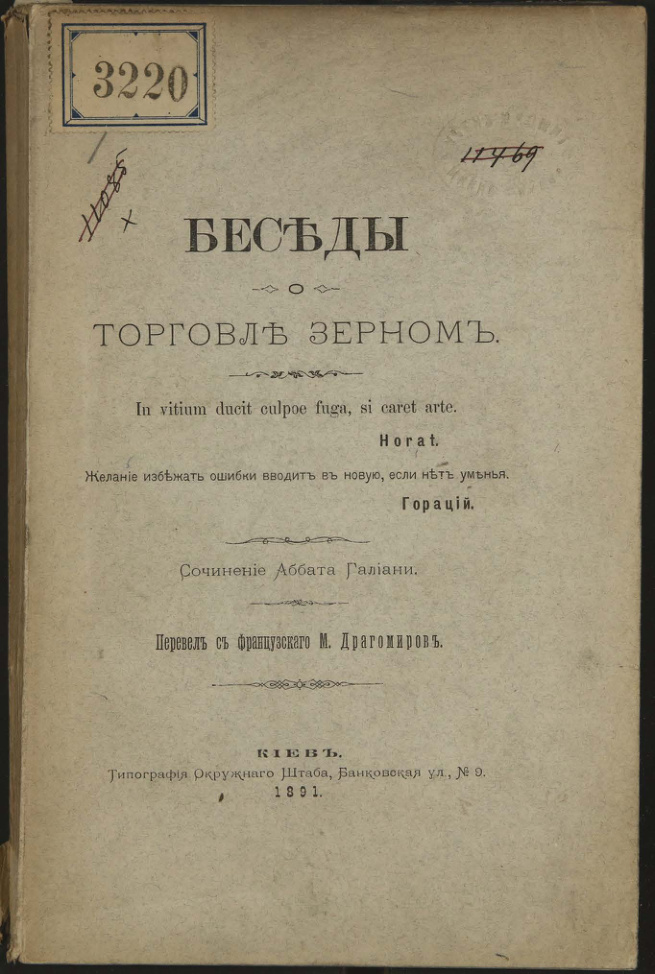 Галиани. Пер. с франц. М. Драгомиров