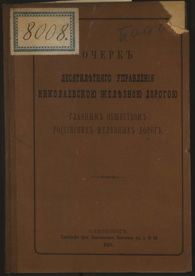 - Очерк десятилетнего управления Николаевской железной дорогой Главным обществом российских железных дорог