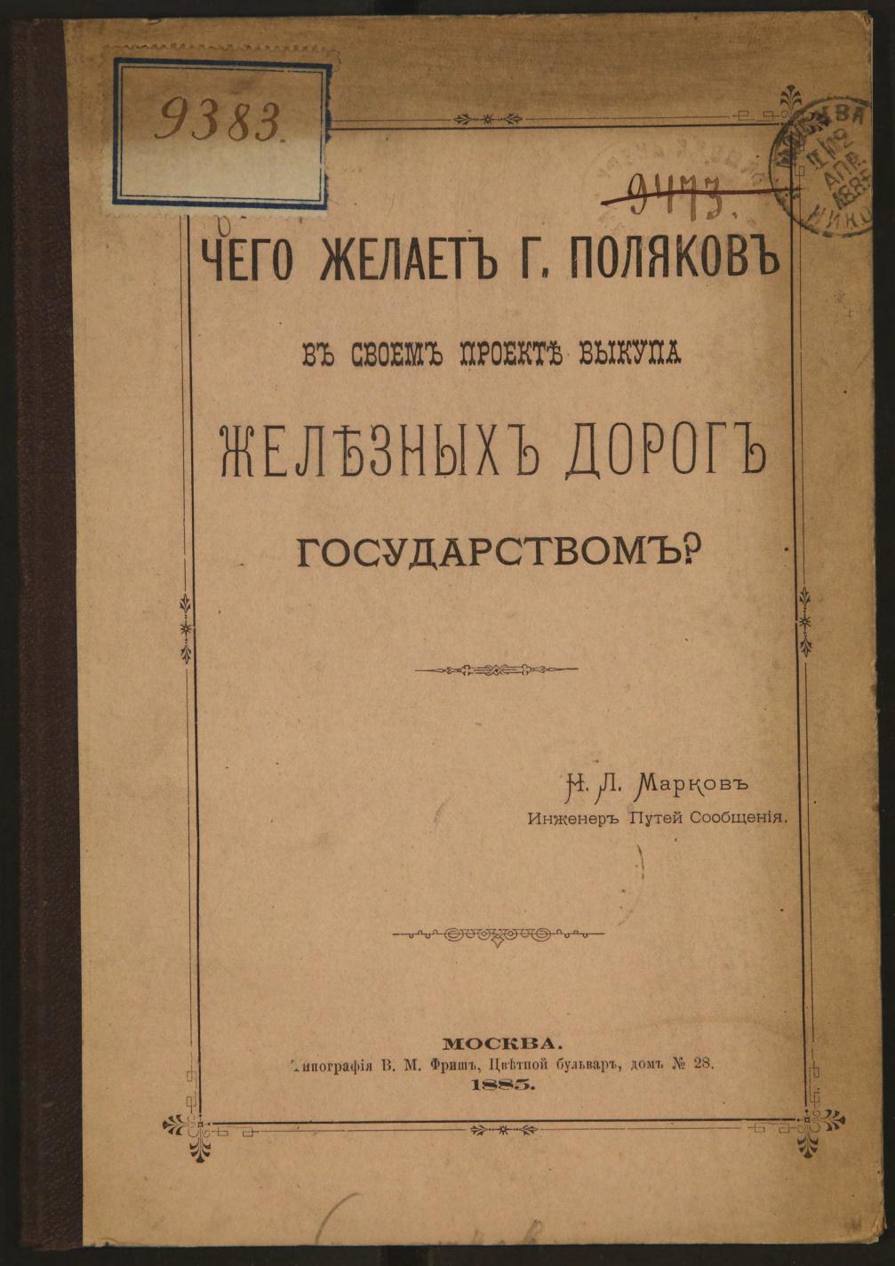 Чего желает г. Поляков в своем проекте выкупа железных дорог государством?