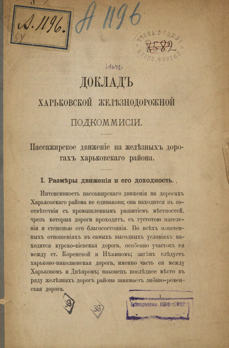 - Доклад Харьковской подкомиссии для исследования железных дорог. Пассажирское движение на железных дорогах Харьковского района