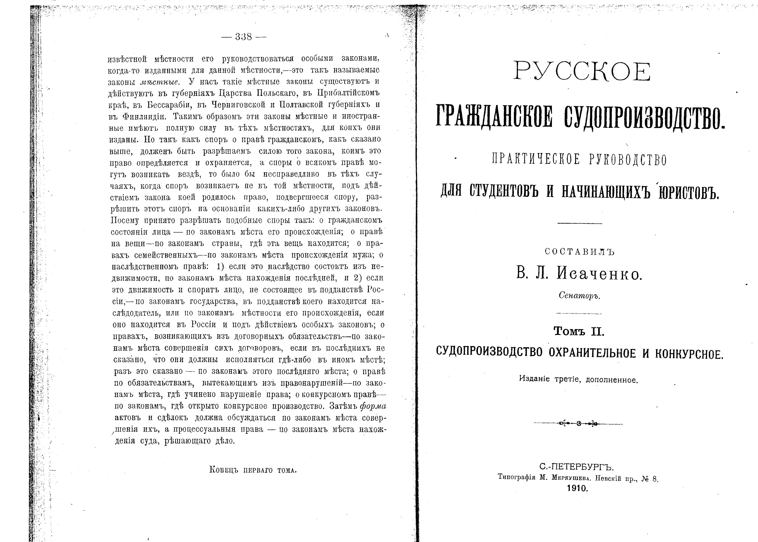 Русское гражданское судопроизводство. Том II. Судопроизводство охранительное и конкурсное
