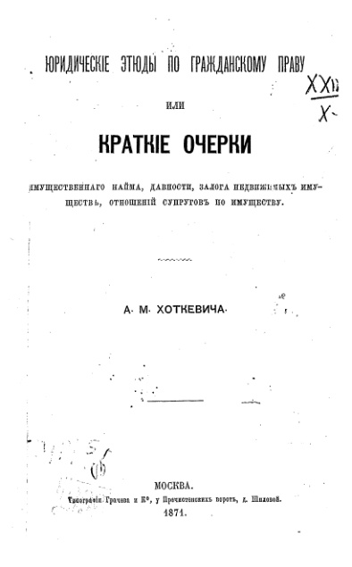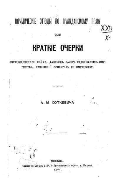 Юридические этюды по гражданскому праву, или Краткие очерки имущественного найма