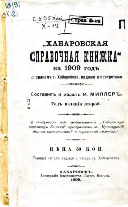 Хабаровская справочная книжка на 1909 с планом г. Хабаровска, видами и портретами