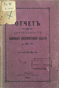 Отчет о деятельности Хабаровского благотворительного общества за 1893 год