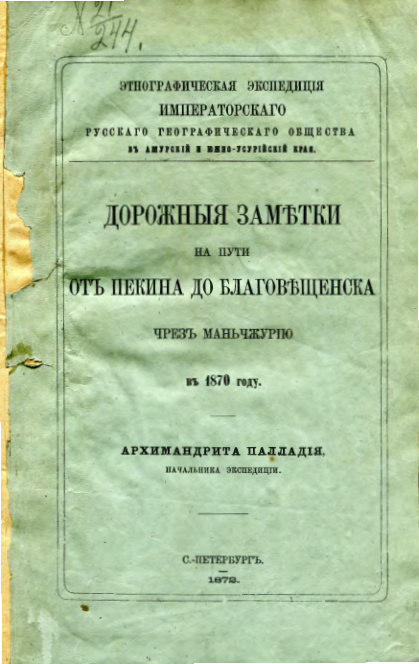 Дорожные заметки на пути от Пекина до Благовещенска через Маньчжурию в 1870 году