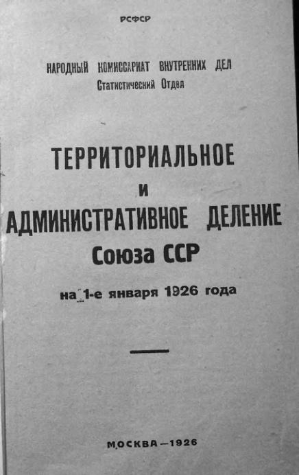 Территориальное и административное деление Союза ССР на 1 января 1926 года