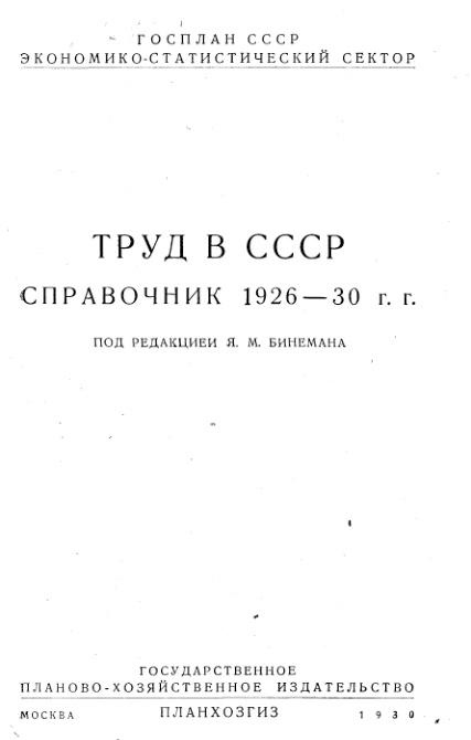 Труд в СССР Справочник 1926-1930 г.г.