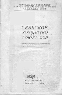 Сельское хозяйство Союза ССР 1939 (Статиcтический справочник)