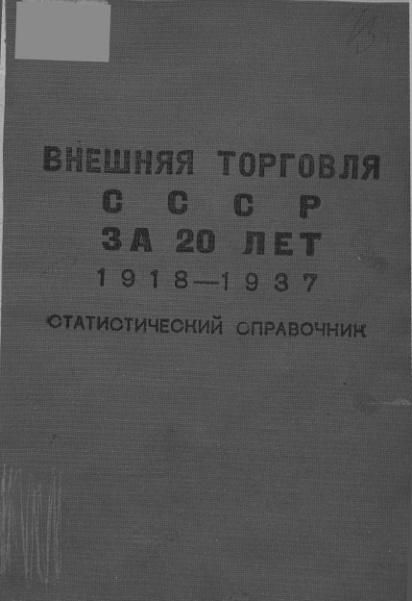 Внешняя торговля СССР за 20 лет 1918-1937 гг. Статистический сборник