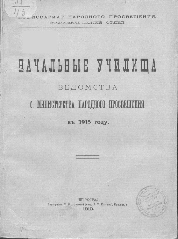 Начальные училища ведомства б. Министерства Народного Просвещения в 1915 году