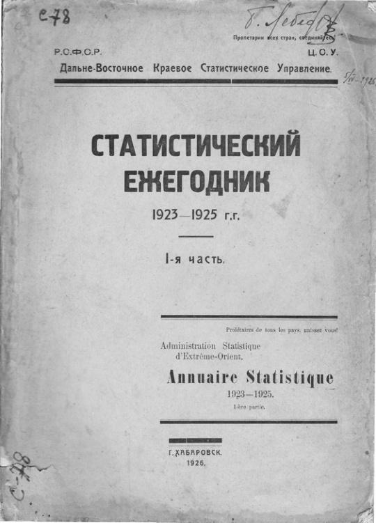 Статистический ежегодник 1923-1925 гг. (I-ая часть). (ДВК)