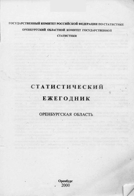 Статистический ежегодник. Оренбургская область. 2000
