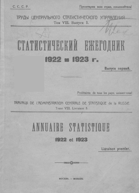 Статистический ежегодник 1922-1923 г. (Выпуск первый)