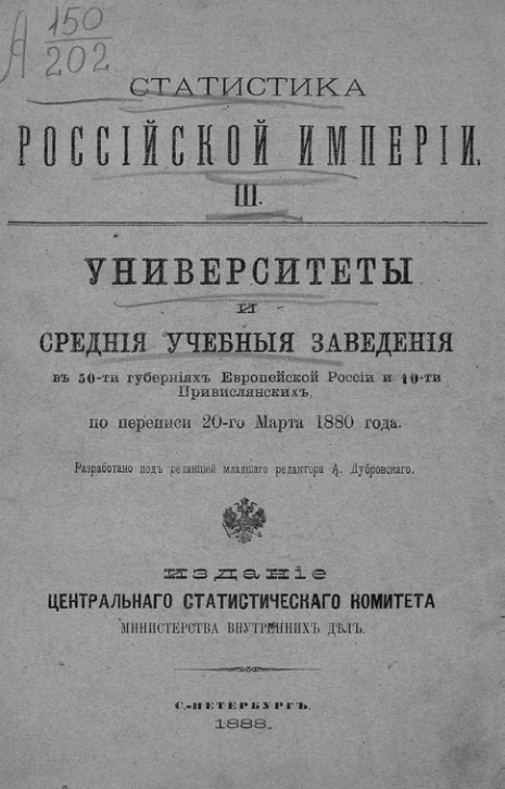 Издание Центрального Статистического Комитета Министерства Внутренних дел. Санкт-Петербург, 1888.