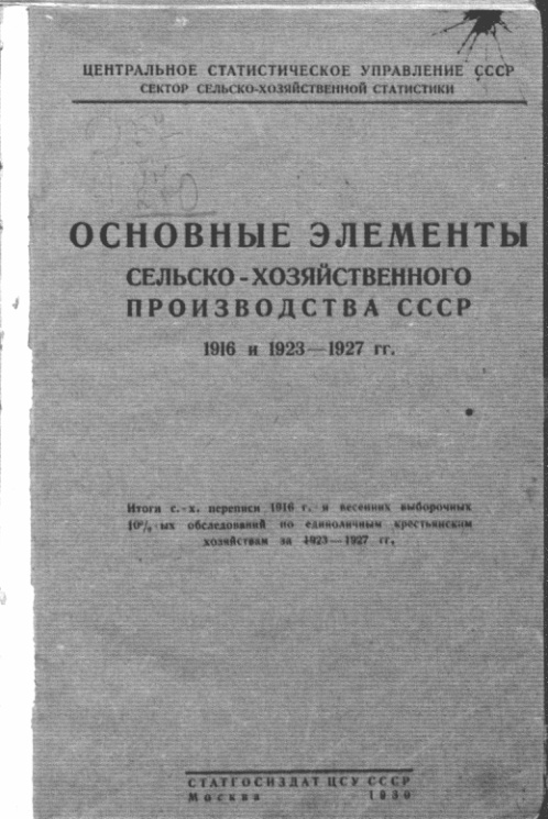 Статгосиздат ЦСУ СССР, Москва, 1930