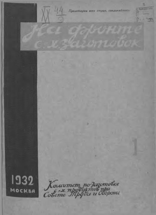 Комитет по заготовкам с.-х продуктов при СТО. Москва. 1932