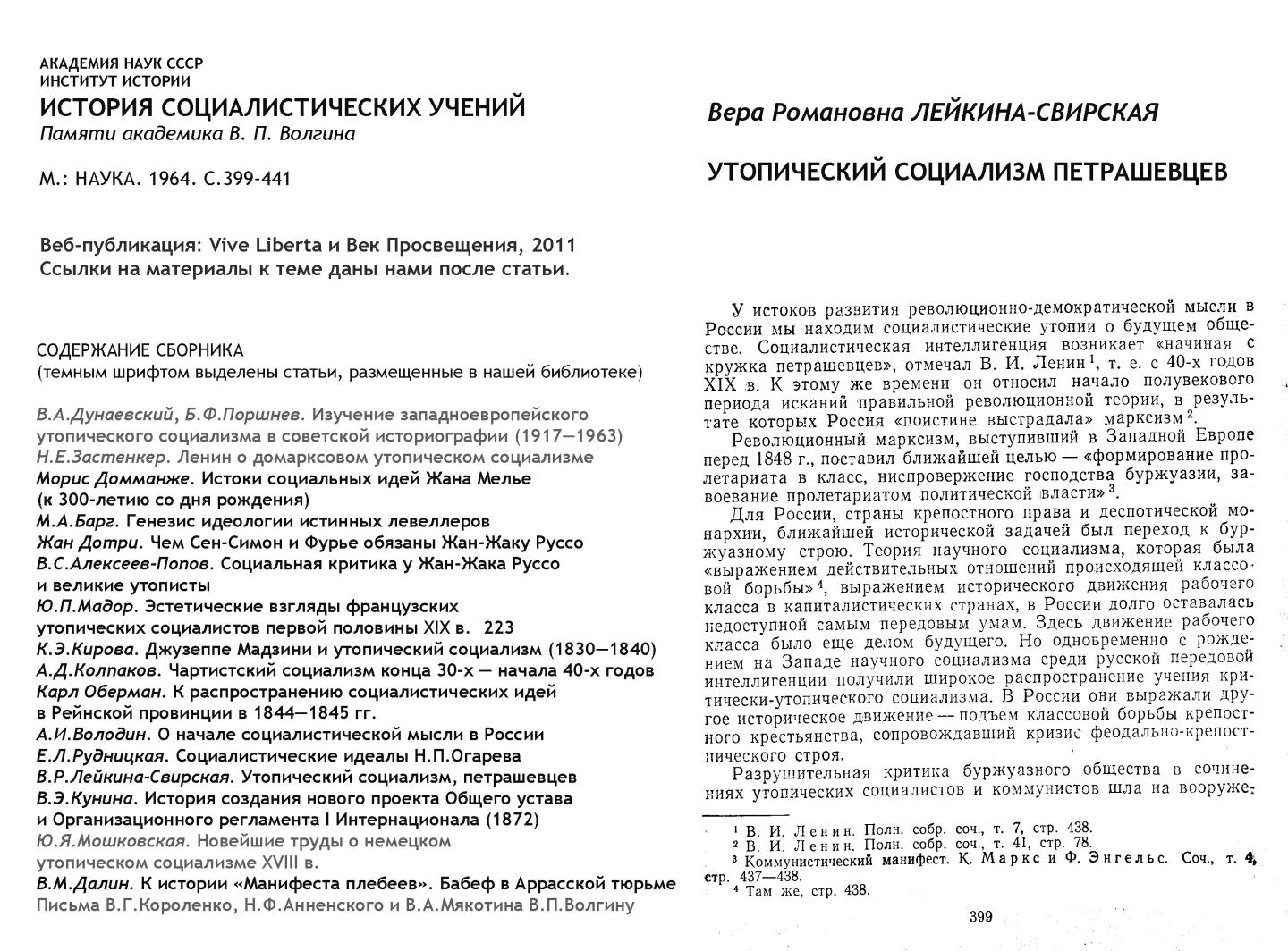 История социалистических учений. Сб. статей памяти акад. В.П.Волгина (М.: Наука. 1964)
