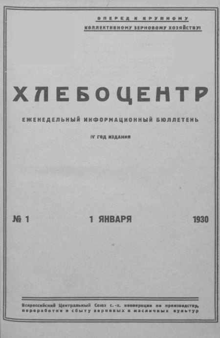 Хлебоцентр (На фронте с.-х заготовок). Еженедельный информационный бюллетень. №№ 1-43, 1930 год