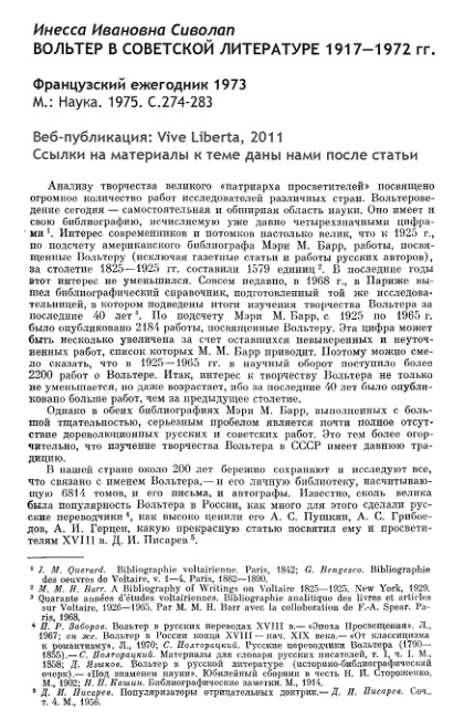 Вольтер в советской литературе 1917-1972 гг.