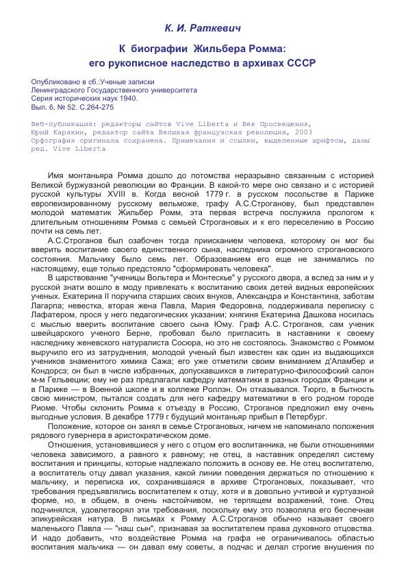 Уч.записки ЛГУ, серия историч.наук. 1940, вып.6, № 52. С.264-275