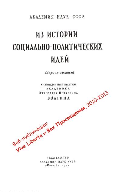 Из истории социально-политических идей: сб. статей к 75-летию акад. В.П.Волгина (М.: изд-во АН СССР. 1955. С.11-13)