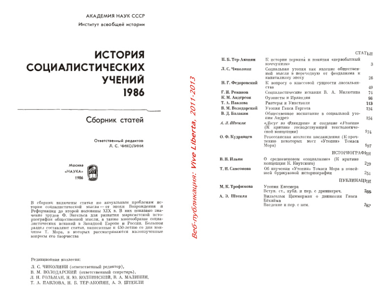История социалистических учений: сб.статей (М.: изд-во АН СССР. 1986. С.3-25)