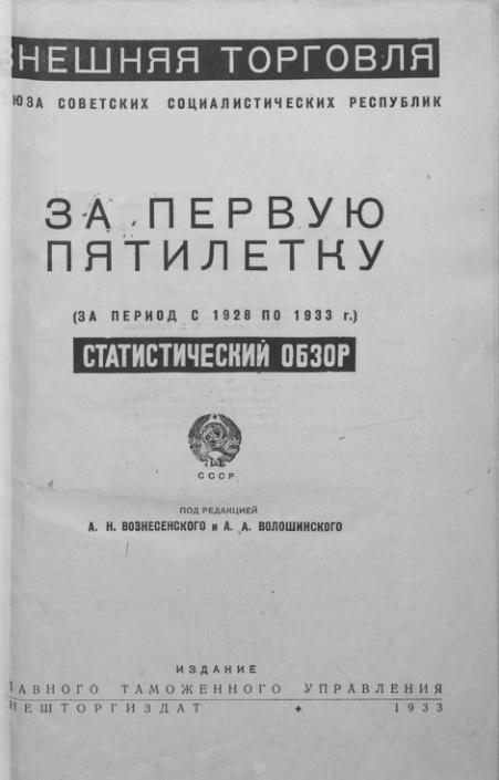 Внешняя торговля СССР за первую пятилетку (за период 1928 по 1933 г.) (Статистический обзор)