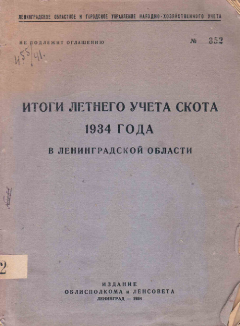 Итоги летнего учета скота 1934 года в Ленинградской области