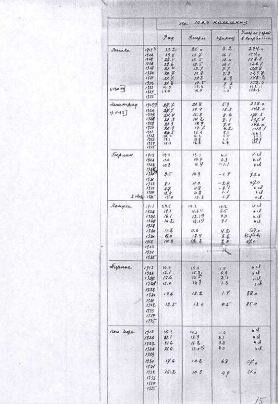 - Сравнение естестественного движения населения в Москве, Ленинграде, Берлине, Лондоне, Париже и Нью-Йорке в 1913, 1926-1935 гг.