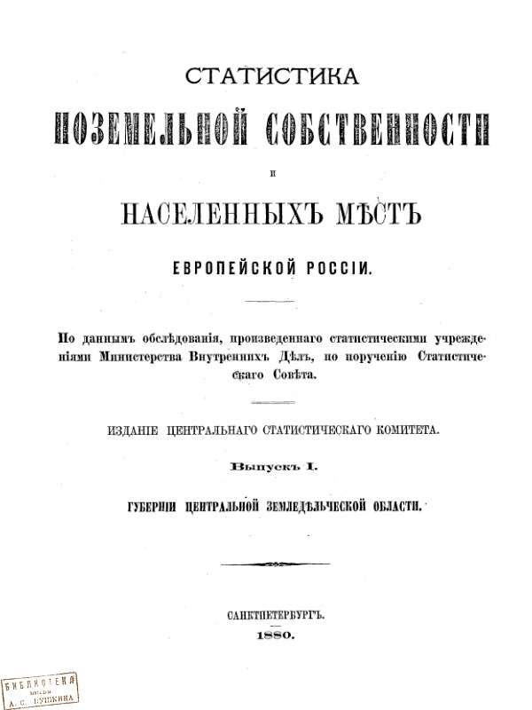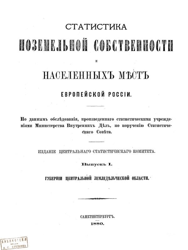 Статистика поземельной собственности и населенных мест европейской России. В.1. 1880