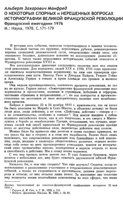 О некоторых спорных и нерешенных вопросах историографии Великой французской революции