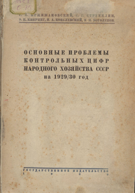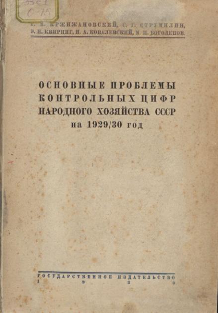 Основные проблемы контрольных цифр народного хозяйства СССР на 1929/30 год