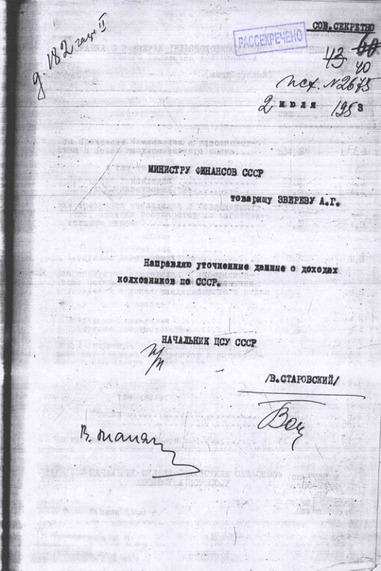 Справка о доходах колхозников в 1952 году. 2 июля 1953 г.