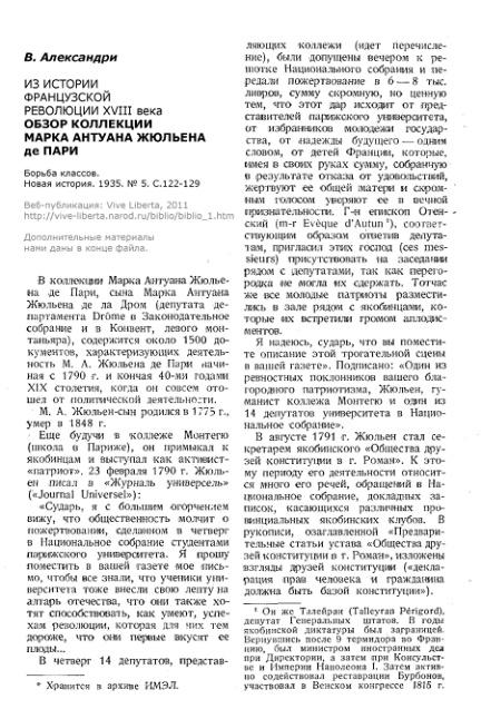 Из истории Французской революции XVIII века. Обзор коллекции Марка-Антуана Жюльена де Пари