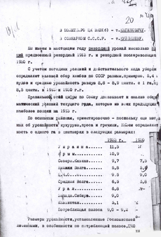 Записка Я.А.Яковлева в Политбюро ЦК ВКП(б) и СНК СССР о методах определения урожайности. 12 сентября 1933 г.